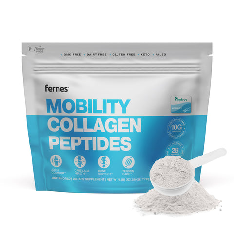 Empower your movement with Fernes® Mobility Collagen Peptides. Our mobility-focused formula features Peptan® bioactive hydrolyzed collagen peptides, a leading brand of collagen researched and scientifically validated to enhance your body's flexibility and movement. It's designed to improve joint comfort and function, support tendon health, preserve cartilage, and enhance bone density.